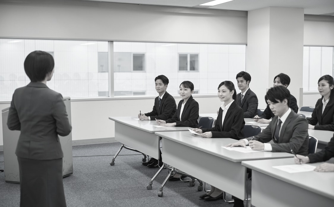 新卒では社会保険に関する研修、労務コンサルティングにおけるケーススタディに基づいた知見を深める研修や、社外の講師(アチーブメント社など)を招き、階層別、部署別、全体に向けた各研修など、年間を通してすべての職員のナレッジ向上を目指し実施しています。